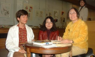 持参した「さくら子すみれ子」にサインと絵を描いていただきました。記念写真も。